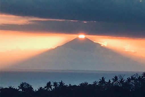A quiet roof terrace under the cool shade of a pergola is equipped with cozy upholstered wooden benches and will allow you to indulge in a gourmet aperitif prepared by the Chef, while watching the sun sets on the Indian Ocean and the Mount Agung.